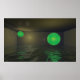 3d digital art of a closed room with 2 glowing green balls filled with water