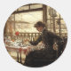 Victorian era painting of young woman in her ship's cabin with large window with view of ships in the harbour. Vintage fine art painting from England by James Tissot.