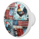 Rooster American Folk art Flag Quilt Ceramic Knob
