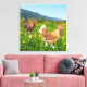 This is the second of three versions of a lovely colourful canvas that will bring a breath of the countryside into your home. It shows a jaunty Cockerel running ardently towards a hen who has turned tail and run away, in a Spring flower meadow that I spotted in France and sketched. A perfect on its own or to display with the other two.