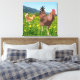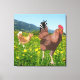 This is the third of three versions of a lovely colourful canvas that will bring a breath of the countryside into your home. It shows a jaunty rooster running away from a hen who has turned the tables on him, fed up with his advances, in a Spring flower meadow that I spotted in France and sketched. Perfect on its own or with the other two in this collection to tell an amusing story.