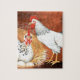 Rooster and Hen with eggs on the Nest Handpainted Jigsaw Puzzle