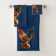 Rooster bathroom towel set. Shown with optional dark blue background or select white.