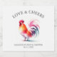 This delightful bridal shower champagne label showcases a vibrant watercolor rooster in shades of pink and orange, perfect for adding a unique touch to your celebration. Use the template fields to personalise the label with your custom text, creating a memorable gift for guests. Ideal for rustic barn weddings and country-inspired bridal showers, this charming label is a standout choice for 2025 wedding themes. Perfect for bulk bridal shower gifts for guests, it brings a blend of rustic charm and elegance to any gathering. Explore more wedding wine label ideas and matching designs to complete your look!