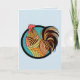 COLORFUL ROOSTER GREETING CARD. INSIDE READS: JUST TO SAY HELLO