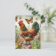 AI generated art of rooster in a garden with veggies and butterflies in a mixed media collage style