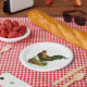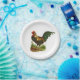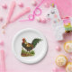Vibrant rooster drawing with green and red plumage. Vintage look.