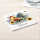 Rooster with Sunflowers Personalised Square Paper Coaster