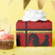 Wrapping paper with a black rooster on red background with decorative lettering for Chinese New Year of the Rooster or Chinese Zodiac birthday. Matching greeting card, postcard, stickers and more... ---- "People born within these date ranges can be said to have been born in the "Year of the Rooster", while also bearing the following elemental sign: