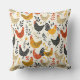 Roosters and Chickens Simple Illustration Print Cushion