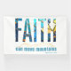 A radiant display of FAITH glows with stained-glass color, rising above subtle mountain peaks. Beneath it, the words “can move mountains” echo the promise of Matthew 21:22—a visual testament to the strength of belief and the beauty of divine possibility.