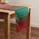 This table runner feels like the visual rhythm of a song stretching across a room. The deep crimson tones pulse like a steady bass line, warm and grounding, while the cool green bands drift across the design like airy synth chords floating above the beat. The colors blend softly, creating a sense of movement that feels almost musical, like a melody rising and falling through a live performance.