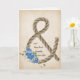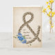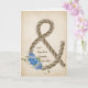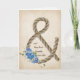 Rope ampersand symbol with a blue flower bouquet on soft textured background for an anniversary.