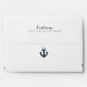 Nautical rope knot and anchor invitation custom envelope with navy blue and white stripes inside to compliment matching wedding invitation set. Personalise return address on front and back flap.