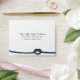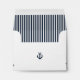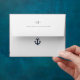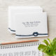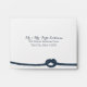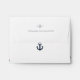 Nautical rope knot and anchor envelope for larger size 4.25 x 5.5 RSVP card with navy blue and white stripes inside to compliment matching wedding invitation set. Personalise return address on front and back flap.