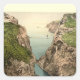 A vintage image of a rope bridge in Carrick-a-Rede County Antrim in Northern Ireland, which was taken towards the end of the 19th century. The photograph shows the rope suspension bridge which connects the mainland to Carrick island. Photograph courtesy of the LOC (LC-DIG-ppmsc-09832).