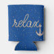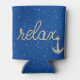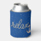 Relax text in nautical rope design and anchor on blue background with water droplet condensation pattern.