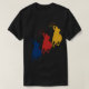 I give wanted to give this a 4 instead of a 5 because these Basic DARK T0shirts run unexpectedly SLIM or Narrow. Which is great if you do not have a potbelly, but I have a paunch. It isn't the shirt's fault that I've got a beer belly. The design and shirt itself is a quality cotton shirt. The color is more of a deep purple, but still a very pretty color. The Basic DARK T-shirts run a bit SLIMMER than the Basic Ts. The neck is a fraction narrower (or seems to be narrower) also. I'm a paunchy middle-aged woman and my neck is 12 inches (31cm) thick and the neckline fell about the same as in the photo of the man, and I had the desire to tug it a bit. So if you're a thick necked man or like loose shirts, be aware these are slimmer shirts. Once I get rid of my lockdown paunch it'll look great. The shirt washed well in cold water with no apparent bleeding. We don't have a dryer, so it hung dry. Did not shrink. Love the colors and the design. The design looks smaller on my shirt than it does on the model on-line. But still, it looks good on the shirt. The printing looks as it does on the model, just the size seems fractionally smaller. Washed garment in cold water, hung dry and design appeared unaffected.