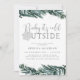 This baby shower invitation features deep green winter pine with silvery splashes and a silver glitter snowflake and the saying "baby it's cold outside" This gender neutral design is perfect for a wintery December or Christmas holiday themed baby shower event.