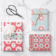 Rose and aqua patchwork design gift wrap set of 3 coordinating papers.