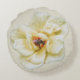 A bumble bee is at the centre of this creamy light-yellow coloured rose collecting the pollen.