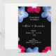 Rose and blue flower on black invitation