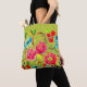 Cheerful rose and cherry floral pattern on your choice of lovely tote bag. A very fresh and summery design. Available in your choice of strap options. Customisable in your choice of background colour on both front and back (This item shown in vibrant yellow green). A bright and original floral addition to your day. Sweet.