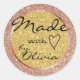 Rose and Gold Glitter Made with Love Heart Symbol Classic Round Sticker
