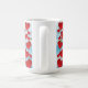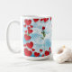 A dreamy valentine whimsical themed mug with red hearts as the border and the rose in the middle and then cascading roses around the mug with the clouds and sky in the backround creating a dreamy feel.