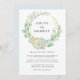 The wedding couple names are framed in a wreath that is decorated with ivory white roses and blue hydrangea. A variety of green leaves and vines give it a modern botanical appearance. The wedding details are written below in a combination of classic upright and italic fonts. The back of the invitation is a soft light blue colour. This wedding invitation is part of a larger collection, Rose and Hydrangea. It contains many items for your wedding ceremony and reception. Please contact me if you need help finding an item.