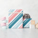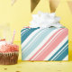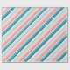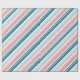 A classic candy cane stripe wrapping paper featuring a rose pink and teal blue colour scheme with white candy cane stripe.