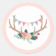 Rose Antlers & Party Bunting Girl's Birthday Classic Round Sticker