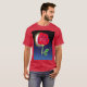 I give wanted to give this a 4 instead of a 5 because these Basic DARK T0shirts run unexpectedly SLIM or Narrow. Which is great if you do not have a potbelly, but I have a paunch. It isn't the shirt's fault that I've got a beer belly. The design and shirt itself is a quality cotton shirt. The color is more of a deep purple, but still a very pretty color. The Basic DARK T-shirts run a bit SLIMMER than the Basic Ts. The neck is a fraction narrower (or seems to be narrower) also. I'm a paunchy middle-aged woman and my neck is 12 inches (31cm) thick and the neckline fell about the same as in the photo of the man, and I had the desire to tug it a bit. So if you're a thick necked man or like loose shirts, be aware these are slimmer shirts. Once I get rid of my lockdown paunch it'll look great. The shirt washed well in cold water with no apparent bleeding. We don't have a dryer, so it hung dry. Did not shrink. Love the colors and the design. The design looks smaller on my shirt than it does on the model on-line. But still, it looks good on the shirt. The printing looks as it does on the model, just the size seems fractionally smaller. Washed garment in cold water, hung dry and design appeared unaffected.