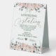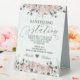 This table tent sign is the perfect size for our tables and easy to read. I also like the material it is made with and no worries about it falling or sliding. Just perfect! Everything about this card is perfect. I like that it says what we want on the front and on the back we were able to personalize a message for our guests.