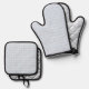 Silver Quilted Heat Protection, Oven Mitt & Pot Holder Set