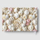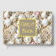 A simple yet eye-catching elegant seamless pattern featuring realstic looking 3 dimensional ivory; cream, beige and pale pink rose flowers tucked in next to each other creating a collage of wall to wall roses. A slate brown square inlay edged with real gold foil appears in the middle of the front cover on which a text template for your custom wording reads "guest book" and a second template also on a slate brown background appears on the spine for your personalised book title. Both text templates are real foil creating a timeless and luxury look to the cover.