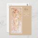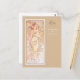 A fine art postcard with the vintage illustration by Alphonse Mucha from The Flower Series, Rose (1898), which has been digitally restored and enhanced. A woman in an evening gown surrounded by pink and yellow roses.