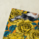 Hand drawn vector pattern with rose flowers and goldfinch birds. All elements for the pattern are drawn first with ink on paper then redrawn and coloured in Illustrator.