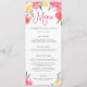 Designed to match our Rosé Garden wine tasting bridal shower invitations, menus feature vibrantly coloured watercolor flowers in pink, red and yellow, flanking your menu details.