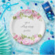 Rose garden paper plate featuring pretty pink rose garlands framing your personalised special wedding message set in an elegant script text. Designed by Thisisnotme©