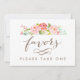This print features watercolored floral roses and says "Favours. Please take one."