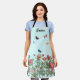 A beautiful garden of red and pink roses encircle the bottom of this apron, while butterflies flutter above the flowers, against a sky-blue background. Lovely, feminine, perfect for spring and summer!