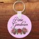 Rose Gardener saying for rose gardeners, growers and lovers. In pretty script letters with vintage art of pink and red rose flowers in bloom along the bottom.