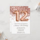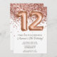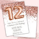 Rose Gold 12th Birthday Party Invitation and rose gold elegant modern 12th birthday party invitation for a 12 year old girl with modern script writing and fun foil balloons.