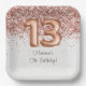 Rose gold 13th birthday party paper plates to decorate the birthday party tables white texture paper printed design.