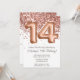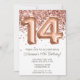 Rose Gold 14th Birthday Party Invitation and rose gold elegant modern 11th birthday party invitation for a 11 year old girl with modern script writing and fun foil balloons.