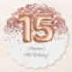 Rose gold sweet 15th birthday party paper coasters to decorate the birthday party tables white texture paper printed design.