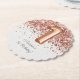 Rose gold sweet 1st birthday party paper coasters to decorate the birthday party tables.