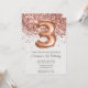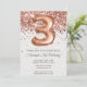 Rose Gold 3rd Birthday Party Invitation and rose gold elegant modern 3rd birthday party invitation for a 3 year old girl with modern script writing and fun foil balloons with printed texture paper background.
