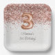 Rose gold 3rd birthday party paper plates to decorate the birthday party tables.